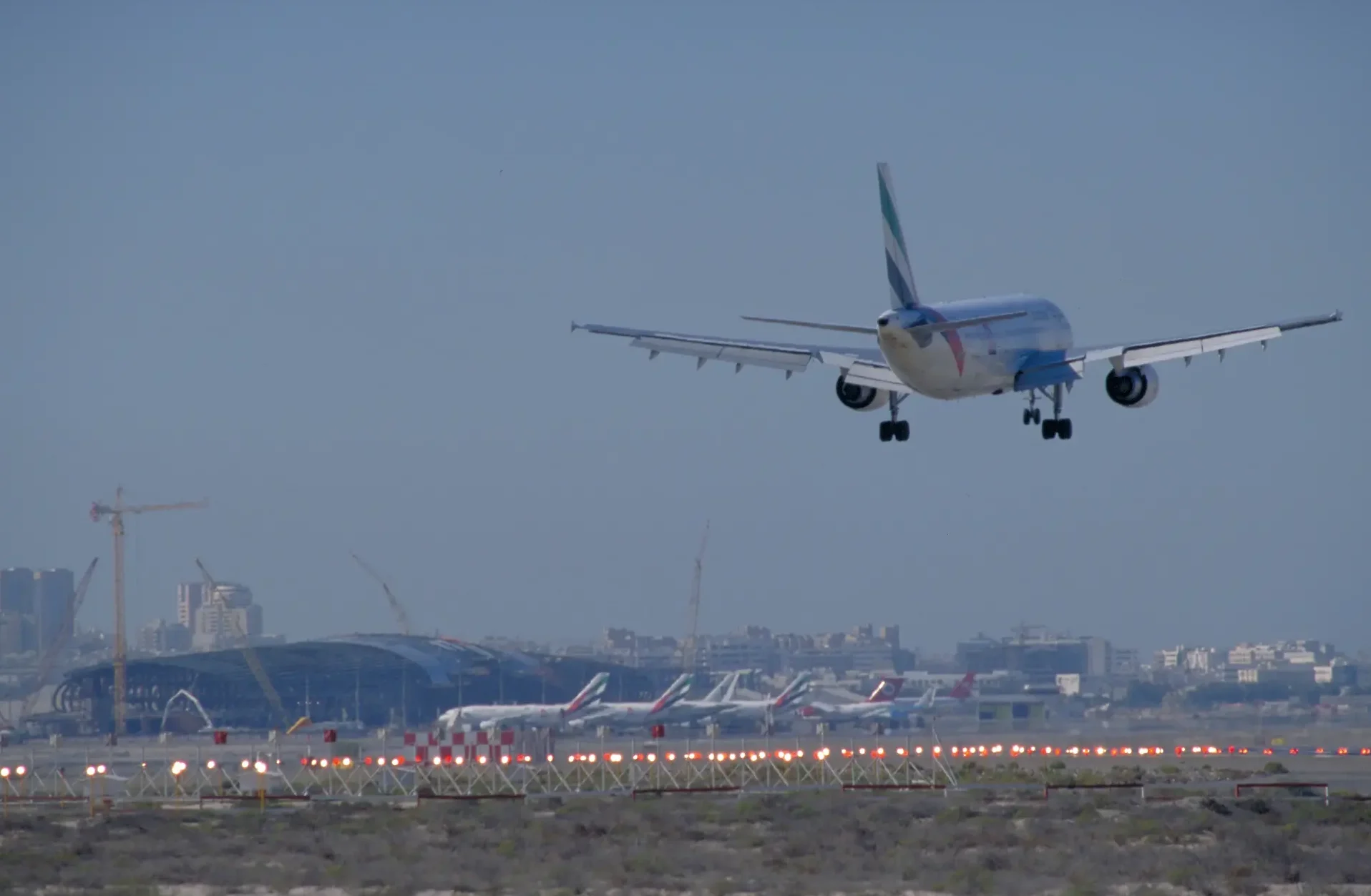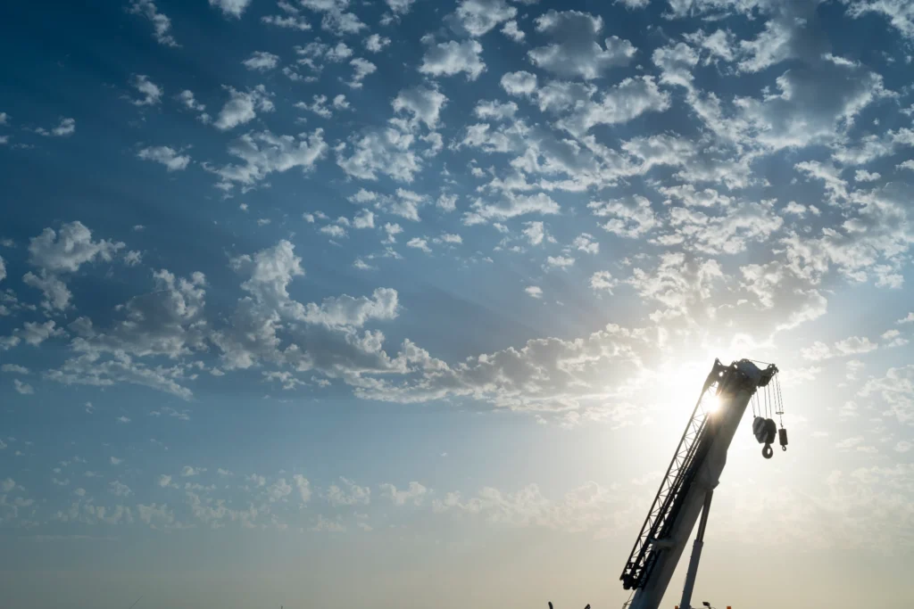 Silhouette of a crane at the project site