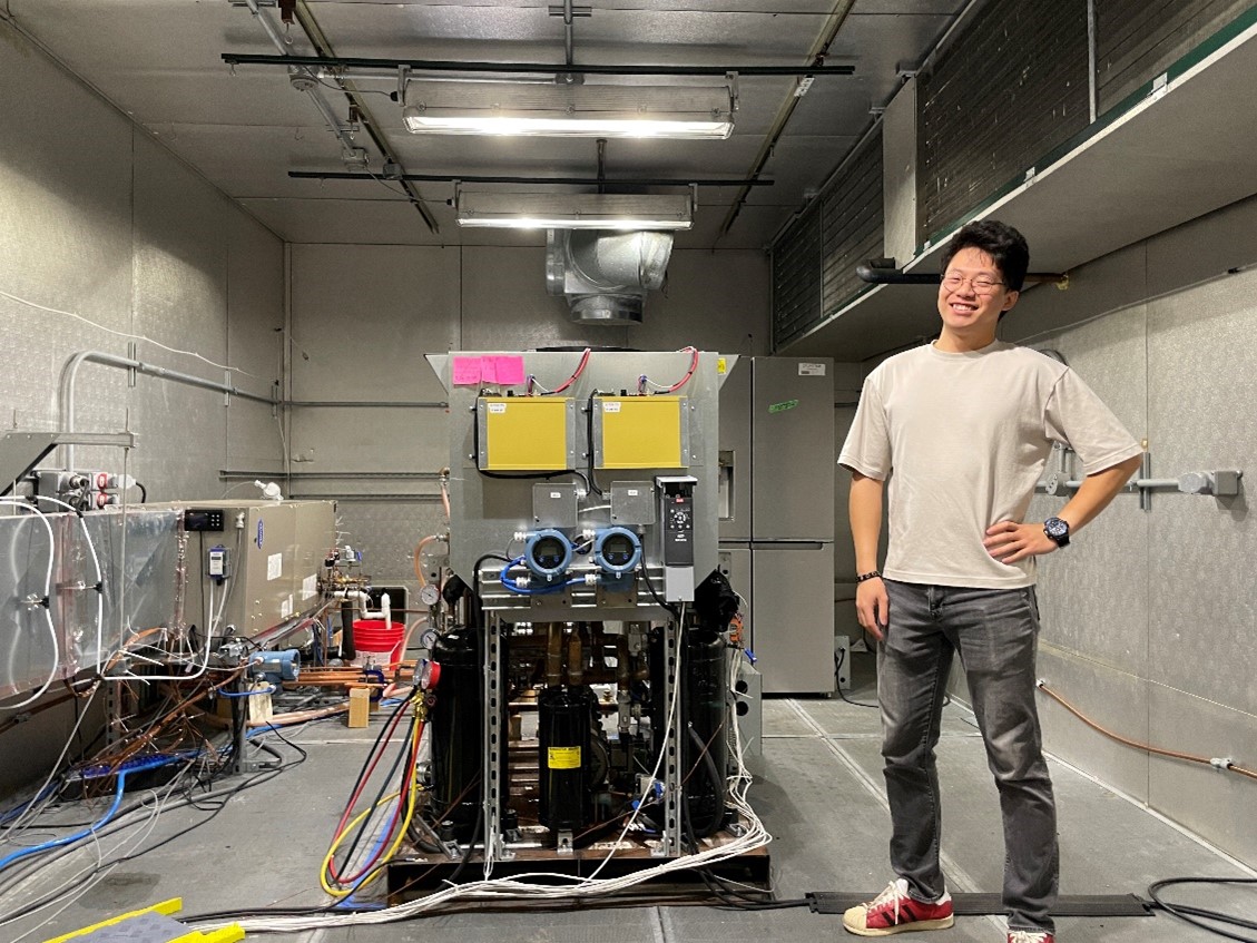Purdue University Ph.D. student Junyan Ren showcases a low-temperature refrigeration experiment in a psychrometric chamber at the Ray W. Herrick Laboratories, the largest academic HVAC&R lab in the world. New regenerative cooling technology has the potential to reduce power consumption for HVAC&R systems by 5%, thereby greatly reducing their carbon footprint.