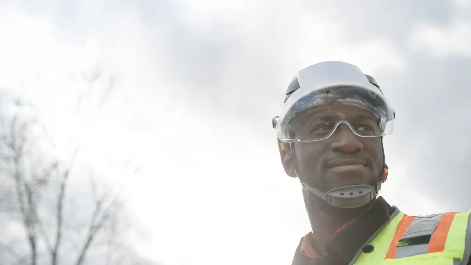 construction worker with the sunlight & sky behind him construction worker with the sunlight & sky behind him