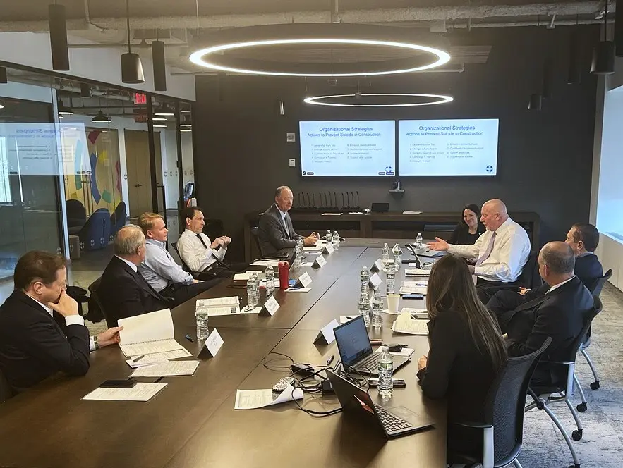 Top executives from America’s largest construction companies and unions hosted the inaugural CEO Advisory Council meeting focused on preventing suicides in the construction industry. Members of the CEO Advisory Council gathered to evaluate current initiatives, discuss industry-wide strategies, and establish goals to lower suicide rates and improve mental health across the construction industry. The meeting was hosted by the American Foundation for Suicide Prevention (AFSP) and executives attended from Bechtel, Fluor, Turner Construction, North America’s Building Trades Unions (NABTU), Kiewit, Clark Construction, and Skanska.