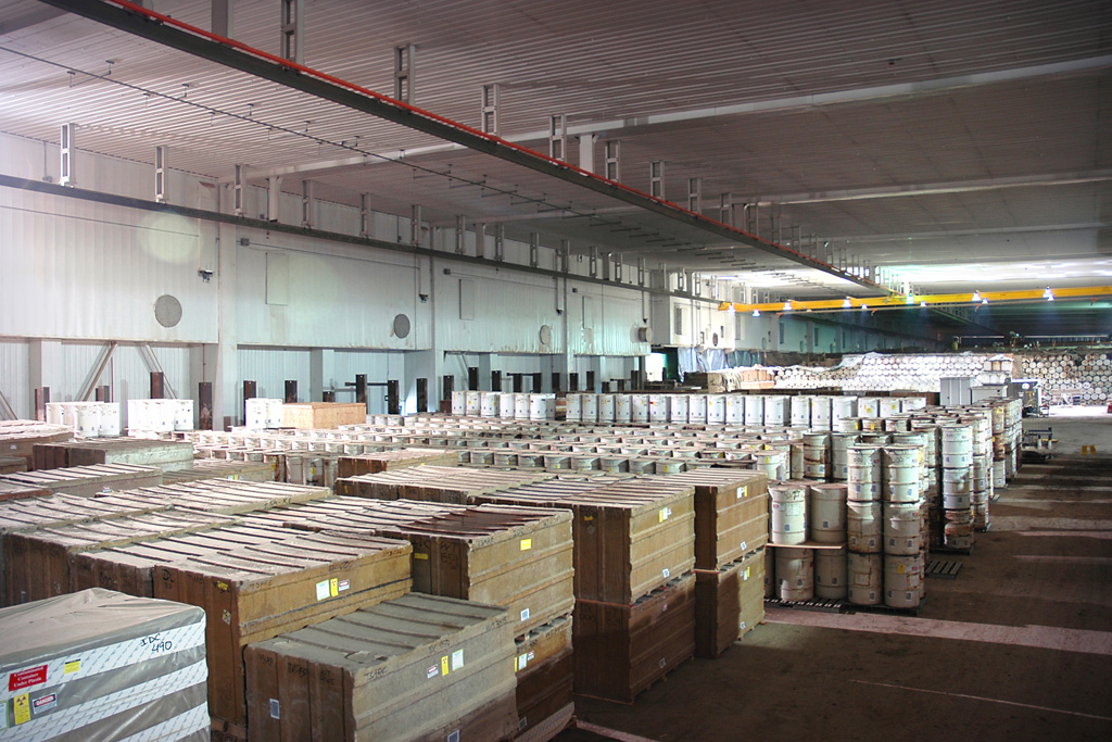 The centerpiece of the AMWTP was a large, hydraulic super-compactor that could compress 55-gallon drums of waste down to a 5-inch puck. This saved space at the national repository for transuranic waste in New Mexico, and drastically reduced the number of truck trips needed to ship the waste.
