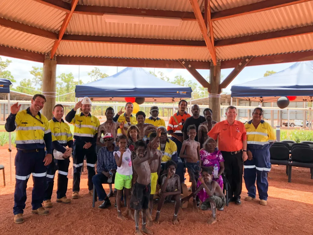 Amrun Project employees join community members to officially open Chivarri, the dedicated WikWaya Traditional Owners' area located in the Amrun Village
