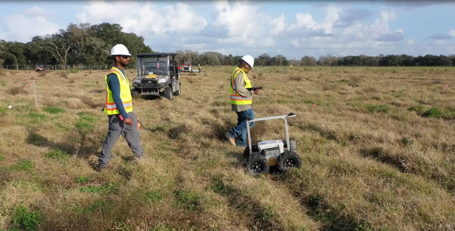 CivDot is a robot on wheels that increased the pace of accurately locating points within the solar field. This self-driving robot helped to improve survey location productivity from 300 piles per day to 1,500 piles per day.