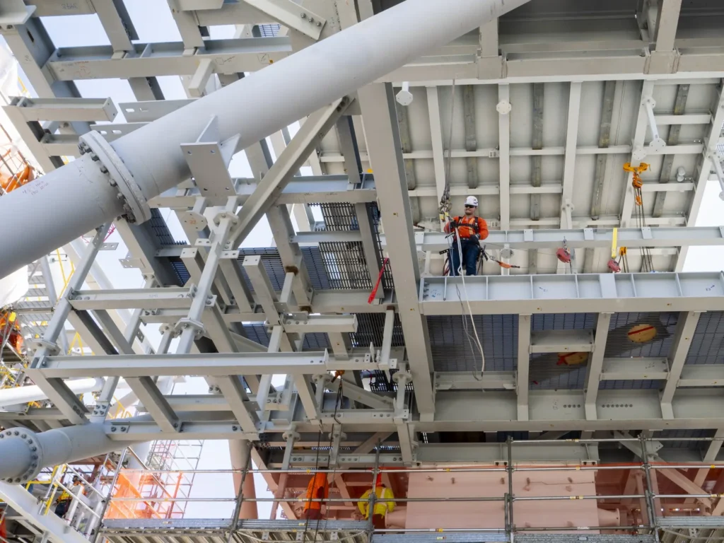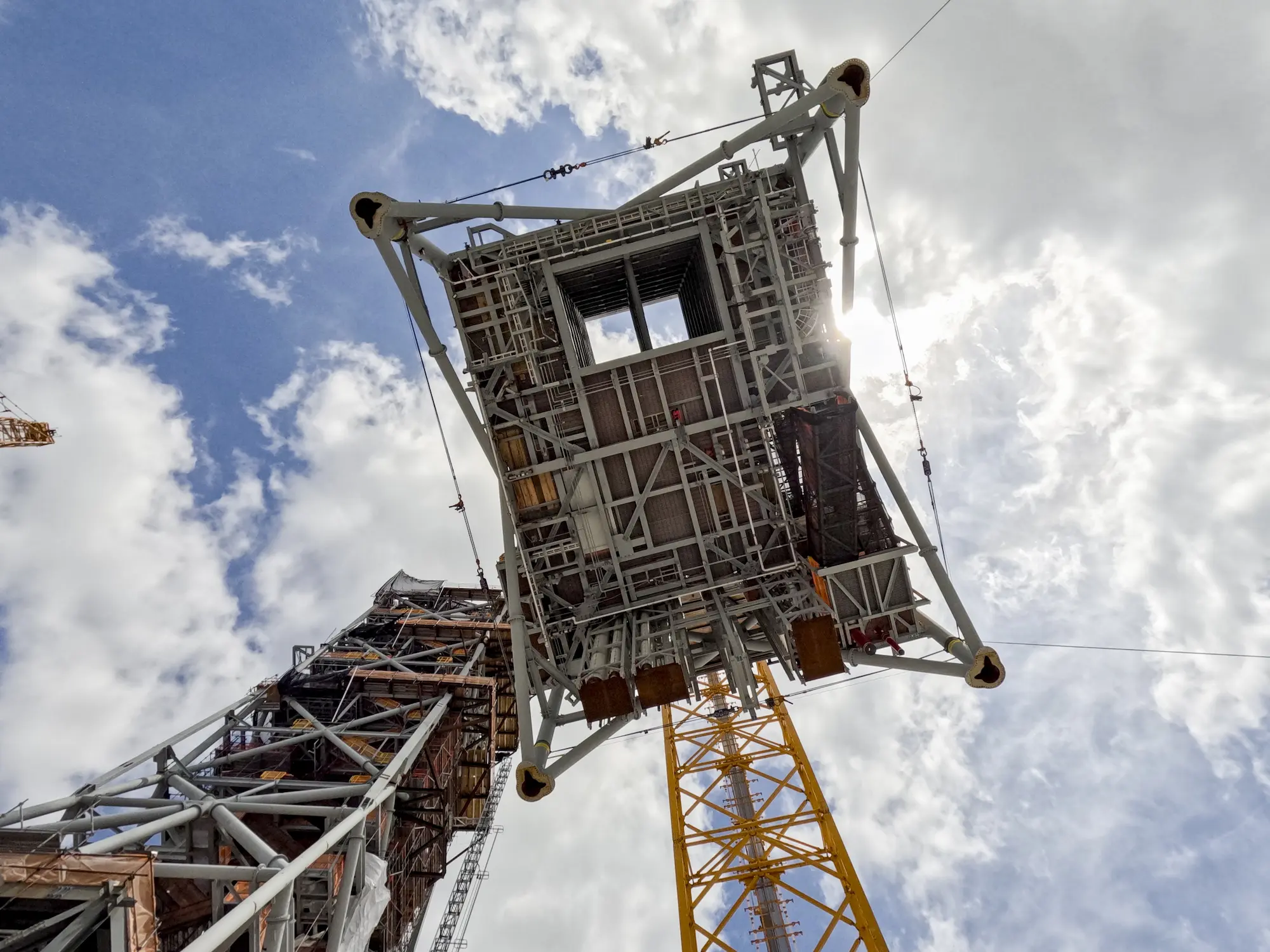 This modular approach eliminated unnecessary work at extreme height, decreased risks from overhead loads, and made overall assembly of ML2 more efficient than traditional “stick-built” construction, where structures are assembled piece by piece at a single location.