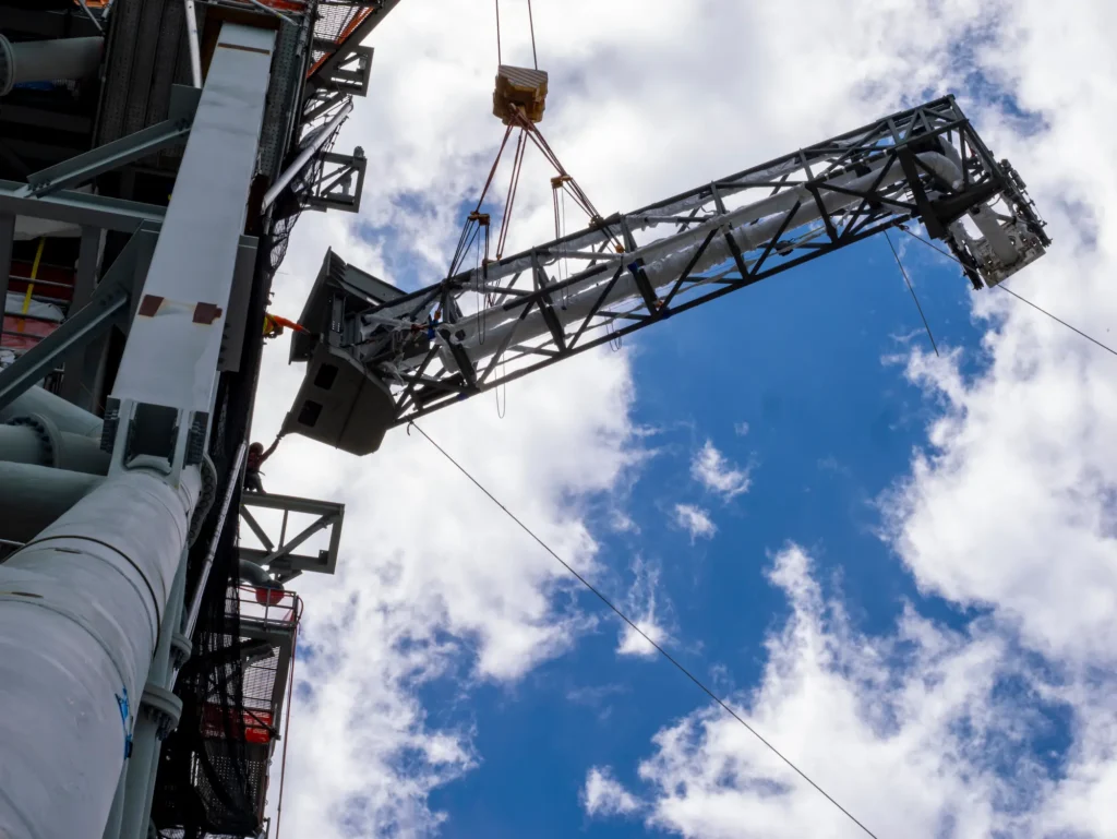 Mod 8’s installation added another 40 feet in length to the system of pipes and cables that will ferry cryogenic fuel, gases, power, fire retardants and more to ML2’s subsystems and to SLS and Orion. Mod 8 will also be the anchor point for the Exploration Upper Stage Umbilical, a new umbilical designed to interface between ML2 and the SLS Exploration Upper Stage, which NASA will first use on the maiden SLS Block 1B in 2028 during Artemis IV.