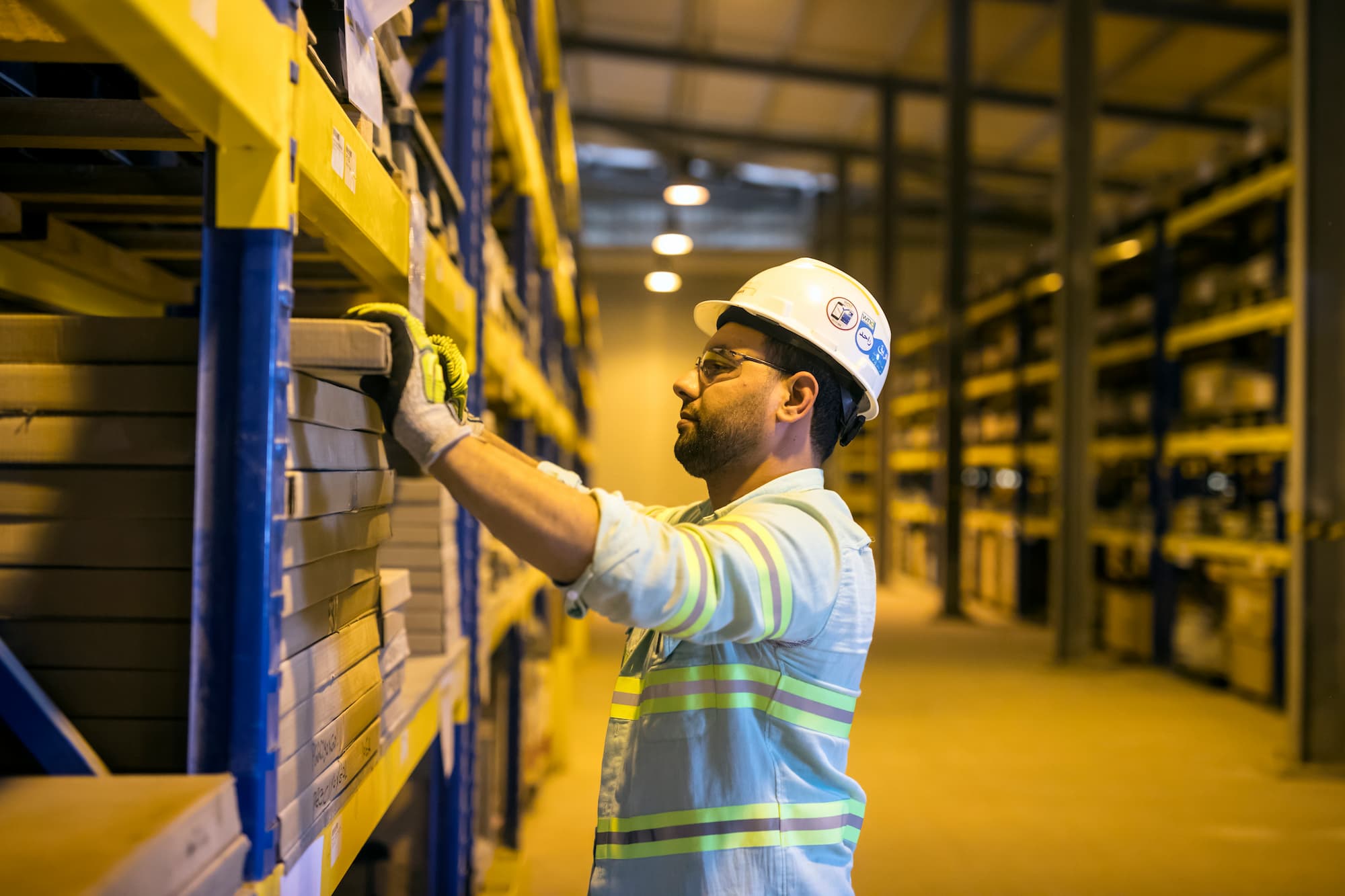 Craft professional checks materials stocks in warehouse at West Nile Delta Gas Terminal job site.