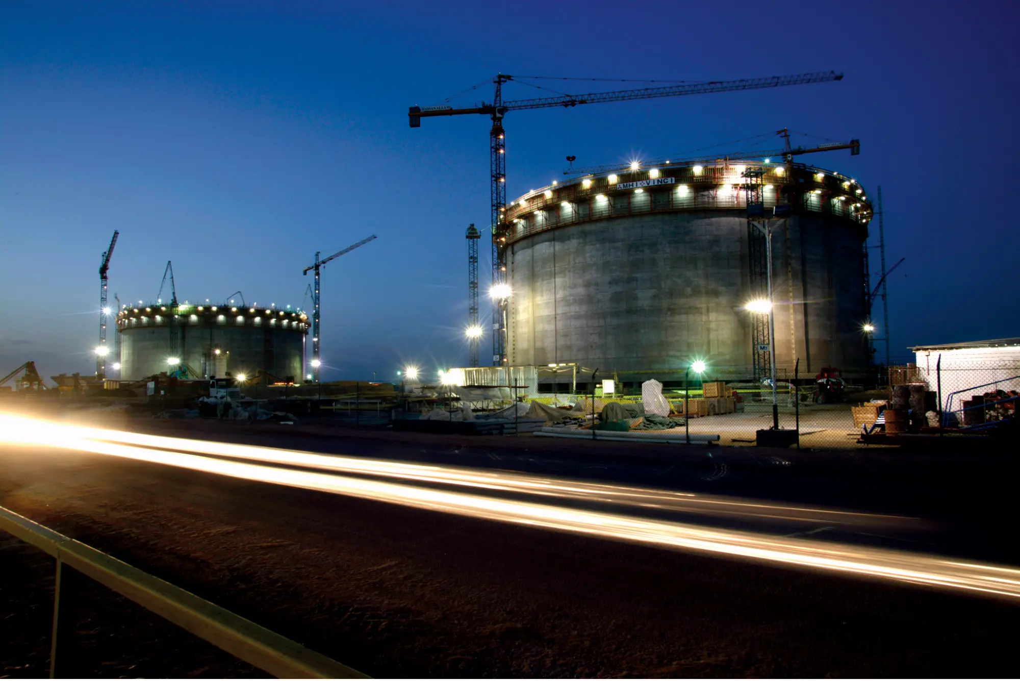 The tanks in Egypt LNG at night
